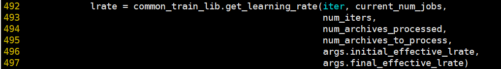 7.4 计算当前迭代中,所需要的chunk数cur_num_chunk_per_minibatch_str和最大参数变化量cur_max_param_change。对于第一次迭代,将会把chunk数折半,最大参数变化值也会缩小sqrt(2)倍。