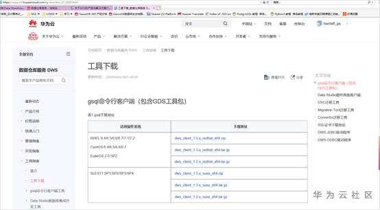 ARM版本:https://dws.obs.cn-north-1.myhuaweicloud.com/download/DWS-Gds-1_7_2.tar.gz