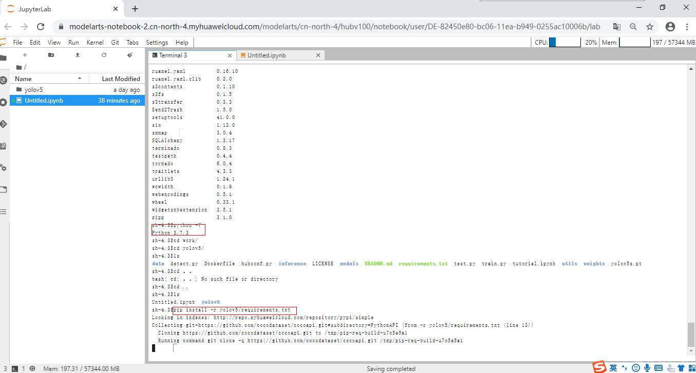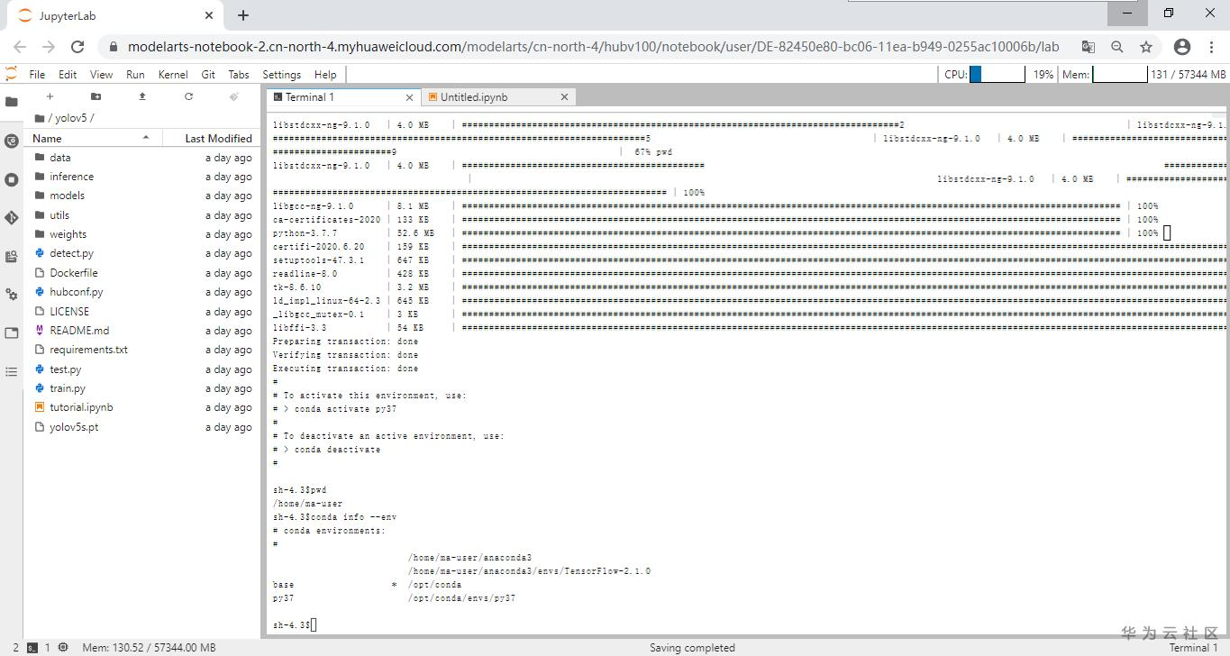 【2020华为云AI实战营】Modelarts Notebook中搭建python3.7+pytorch1.5环境 (一)