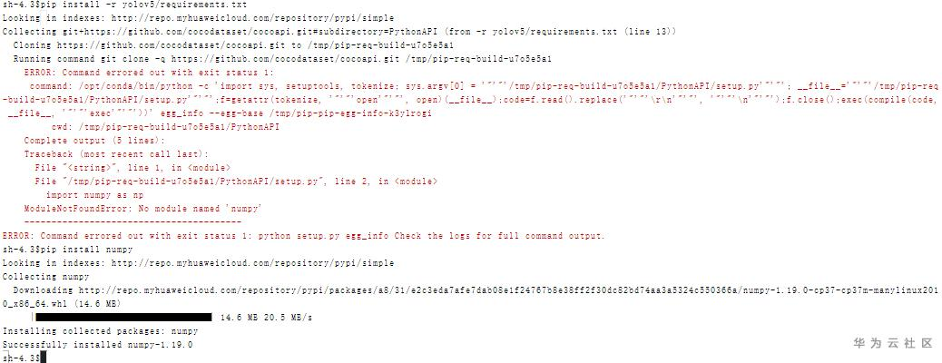 如果出现下面报错,可以先安装numpy后再执行