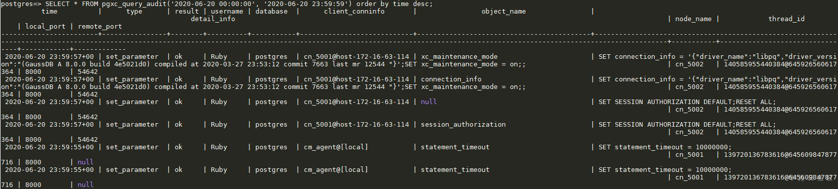 pgxc_query_audit(timestamptz startime,timestamptz endtime)