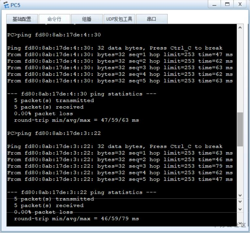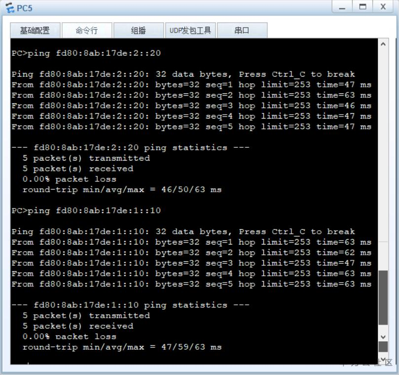 PC5 Ping通测试:PC5->PC1/PC2