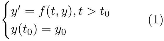 第一个式子是ODE形式,第二个式子给出了在时刻0时的初值条件,这个问题也是ODE里面的初值问题。刚才提到由于f可能是很复杂的表达式,所以绝大情况下求不出函数y的表达式,实际中经常用数值解法。
