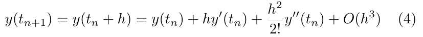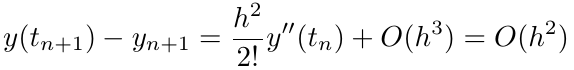 但是,公式(2)是由泰勒展开得到的,存在误差,所以欧拉方法求解的数值解会有误差积累,具体来说,函数y在tn+1时刻的展开为: