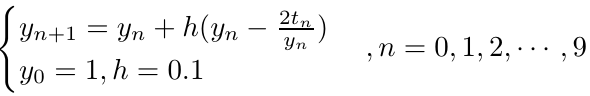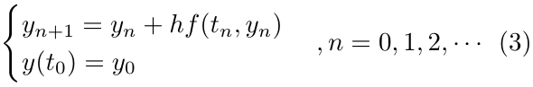 根据公式(3),就可以依次求解函数y在t0,t1,t2,...等离散时刻的数值解了。
