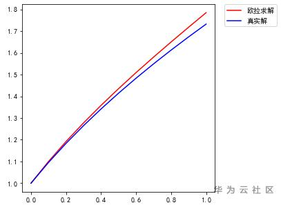 用欧拉方法求解下列ODE初值问题,x范围[0,1],间距h取0.1,并跟真实解