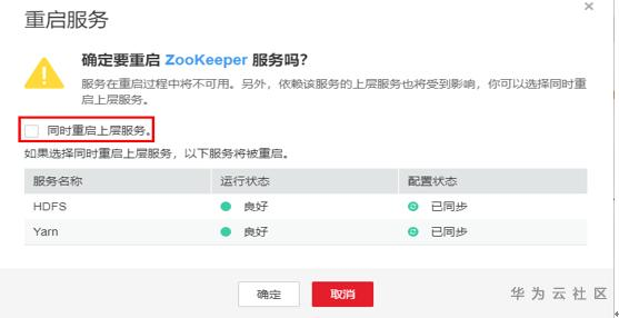 1. FI-om工程下的业务背景:Manager页面ZooKeeper服务重启时,会在UI上显示上层服务,如果勾选同时重启上层服务,那么HDFSYarn将会同时重启,不能选择其中之一进行重启。反之,如果不进行勾选,那么只会重启ZooKeeper服务,其他的不会重启。