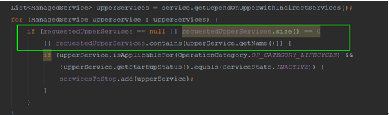 在对服务组件进行遍历时候,判断传来的upperServices是否为null为空。以及要保证其包含的服务组件里存在遍历的组件。