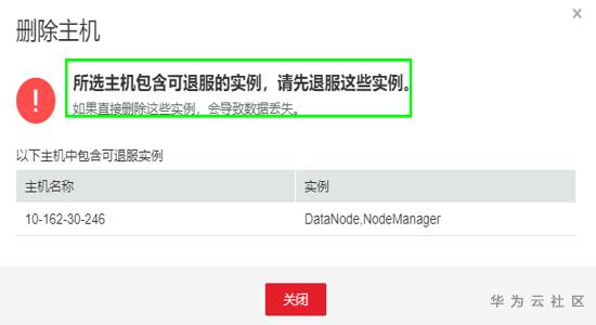 1.在原manager上面,删除主机时,需要先处理掉该节点上可以退服的实例,然后再可以删除节点。如下所示: