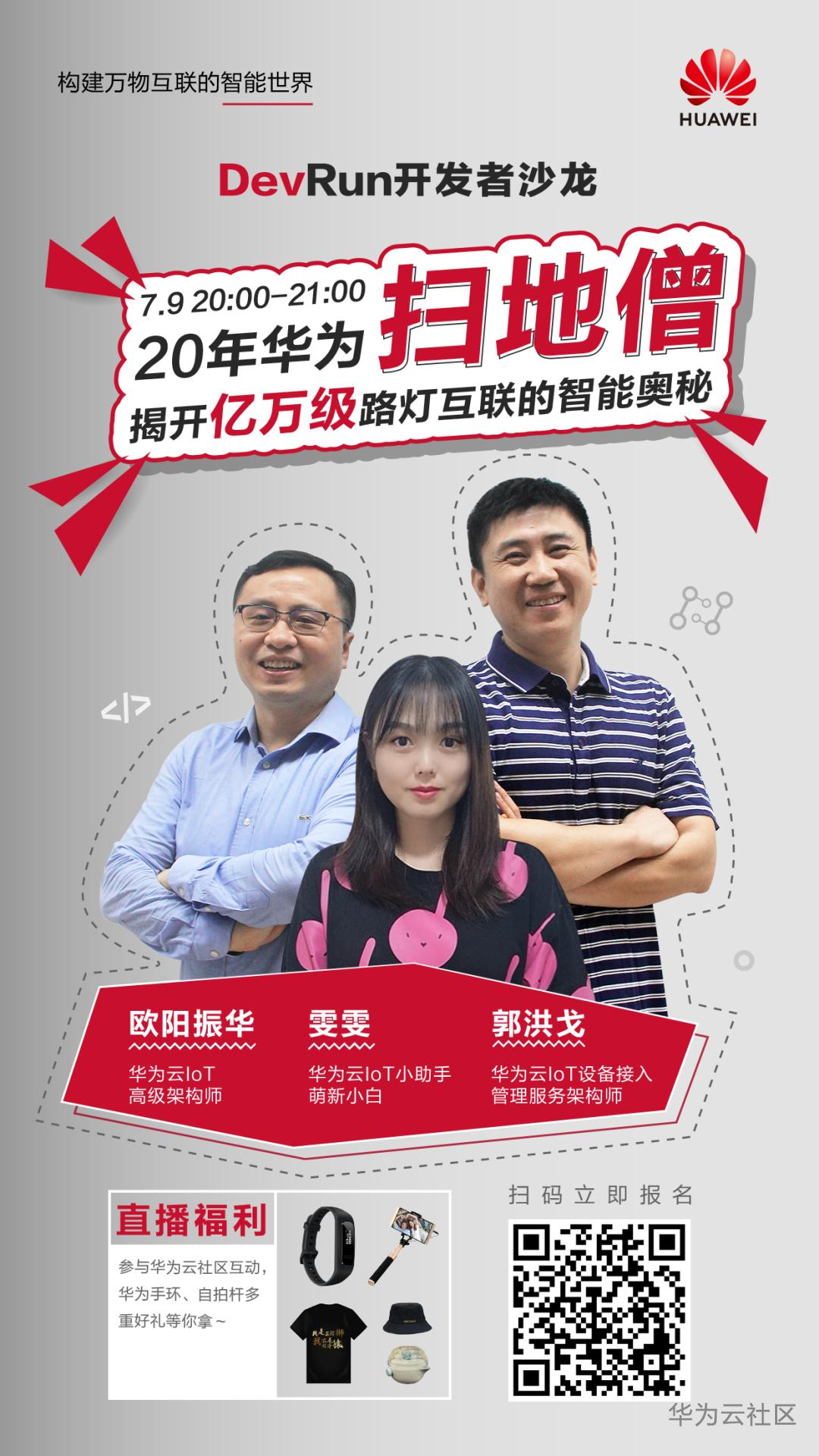 直播将通过路灯开发实操演示,结合智慧路灯当前的发展技术,展示设备管理云服务的最新特性,如何实现极简、安全上云,万物互联;现场揭秘华为云IoT物联网云化架构,自动化工程能力,灰度发布能力,超大容量扩展架构,可靠性容灾能力等技术,7月9日,20年的华为扫地僧在直播间等你来,畅聊物联技术。