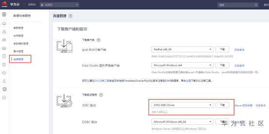 DWS提供了便捷的客户端下载与安装方式,只需登录云平台,点击进入DWS服务,即可进行下载,具体步骤如下(以公有云进行展示):
