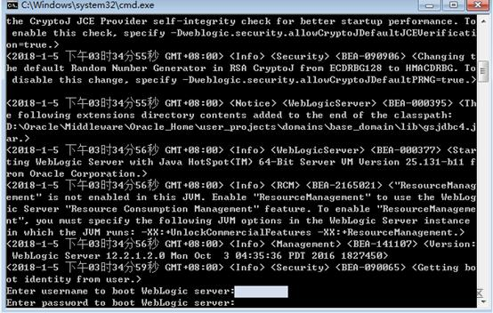 启动过程中输入用户名及密码(也可以写在weblogic配置文件中)