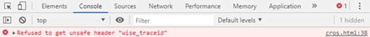 如果在服务器响应中,没有携带Access-Control-Expose-Headers或者Access-Control-Expose-Headers的值不包含wise_traceid,则浏览器会报错,JS拿到的值也是null: