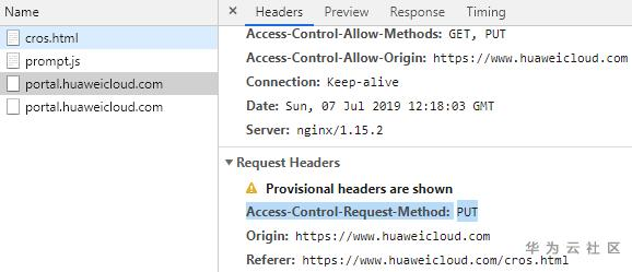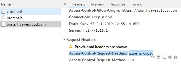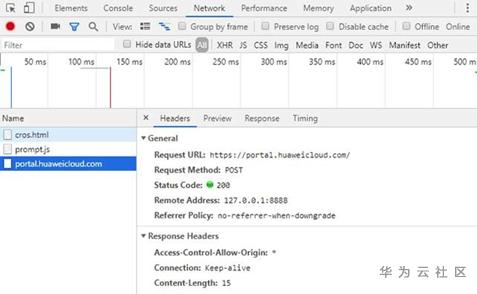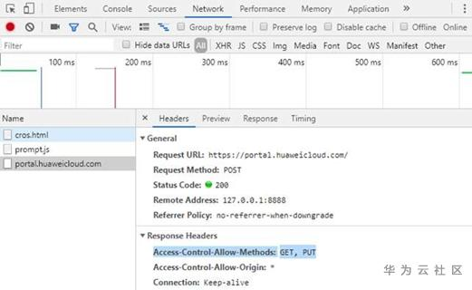 但是使用该方法,会导致无法发送portal.huaweicloud.cn域名下的cookie,因此应用场景有限。