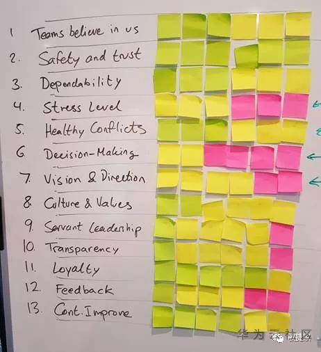 在会上,团队表达自己在各种主题上的感受,例如协作,交付的价值,影响力,获得组织的支持等。结果会生成对团队和领导力的洞见及改进措施。我喜欢这个工具,因为它是