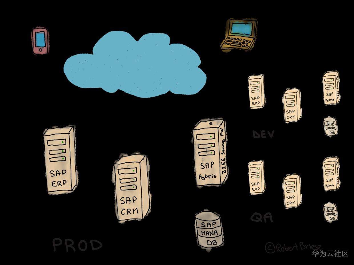 在我加入的时候,有四个团队并行工作,研发新功能或者增强现有平台,并用固定的时间表合并代码,然后进行好几周的集成测试和验收测试。系统格局是一个复杂的三层结构,包含基于Spring框架的主要J2EE应用程序平台SAP Hybris Commerce,用于存储数据的SAP Hana 数据库,基于SAP PI服务器与SAP ERP和SAP CRM的同步,还有额外的第三方服务用作分析、处理信用卡支付或用户生成内容的集成。