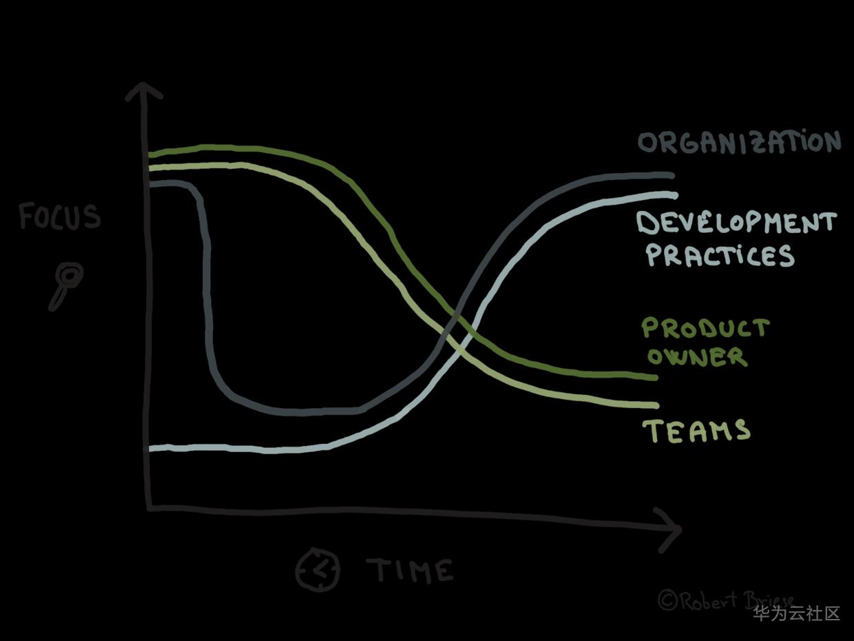 在第一年,一个Scrum Master只能支持一个团队,后来有些Scrum Master可以同时支持两个团队。他们的关注点从帮助团队改进工作方式转移到揭露阻碍团队提升绩效的组织功能障碍上。这反映在_LeSS指南:Scrum Master关注点中。