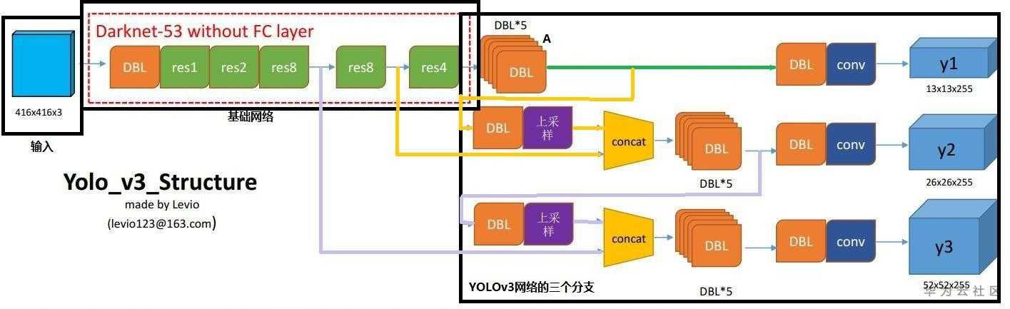 YOLOv3网络的三个分支:Y1,Y2,Y3