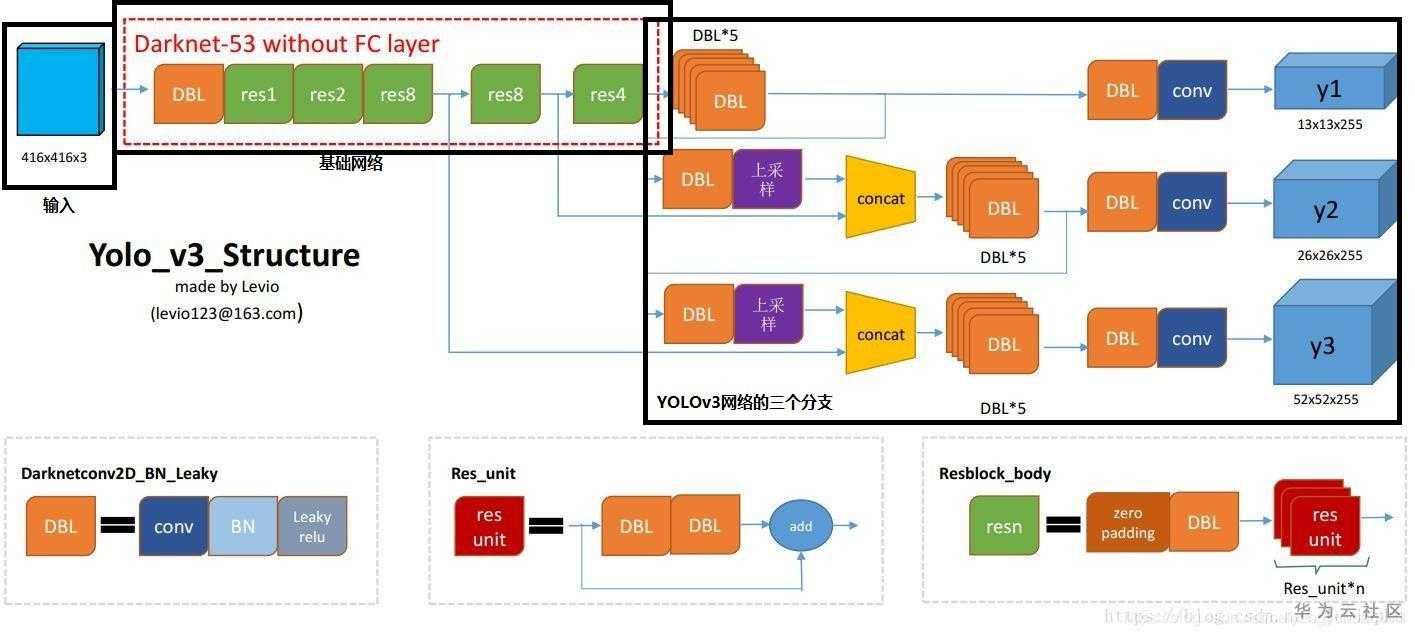 YOLOv3网络的三个分支