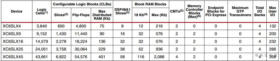 FPGA兼容Xilinx Spartan-6 XC6SLX9/16/25/45,平台升级能力强,以下为Xilinx Spartan-6 FPGA特性参数: