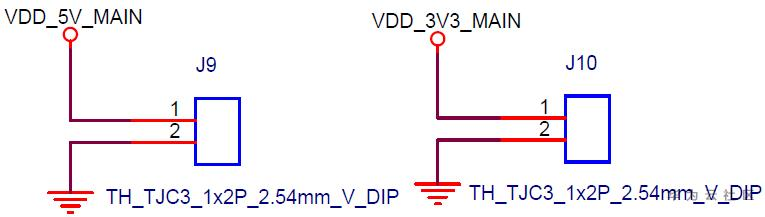 开发板底板的J9、J10是扩展电源接口,使用2pin白色端子座,支持3.3V和5V电压输入,引脚定义如下: