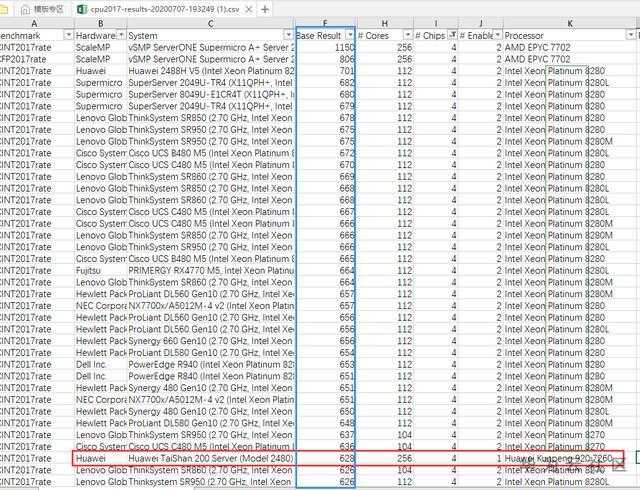 比肩intel最高端铂金系列,华为CPU鲲鹏920最新SPEC跑分