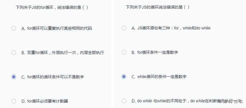 但是for循环的条件就一定是数字吗?上学的时候做选择题遇到这种带“一定”、“必须”的选项我都会特别留意,经验告诉我这类选项大部分都是错的。于是我在网上查询了一下JS的循环语句,结果如下: