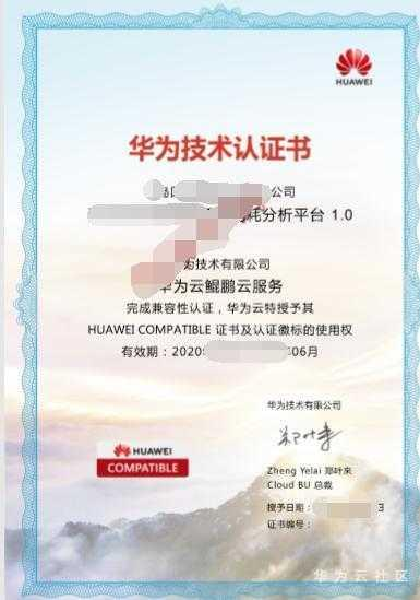 在我们自测完成后,双方成立联合测试小组,进行了详细的业务介绍和交流,华为实验室对接人员对平台进行了测试,在经过了双方多次沟通后,最终全部通过了联合测试,获得了鲲鹏兼容性技术认证书: