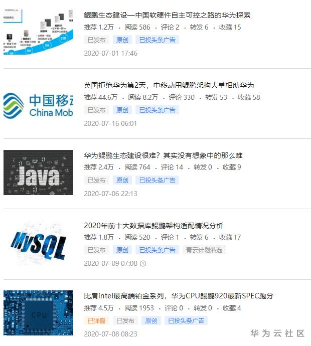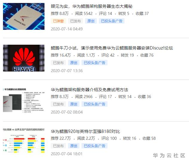 但是,与鲲鹏的缘分才刚刚开始,在这几个月的鲲鹏适配过程中,对鲲鹏架构也有了更深入细致的认识,更感受到了鲲鹏生态对国家民族自主可控事业的重要性,就在个人头条上发表了一些介绍性的文章,获得了强烈的反馈(要知道一个月前我刚重新开始发布头条,才300个粉丝):