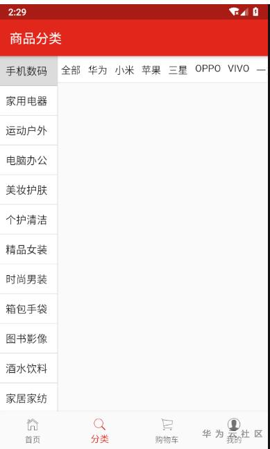 当我们从后台获取到商品分类时,第一次调用 Provider.of<ChildCategory>(context, listen: false).getChildCategory(list[0].categoryGood);初始化加载后左侧菜单栏显示。