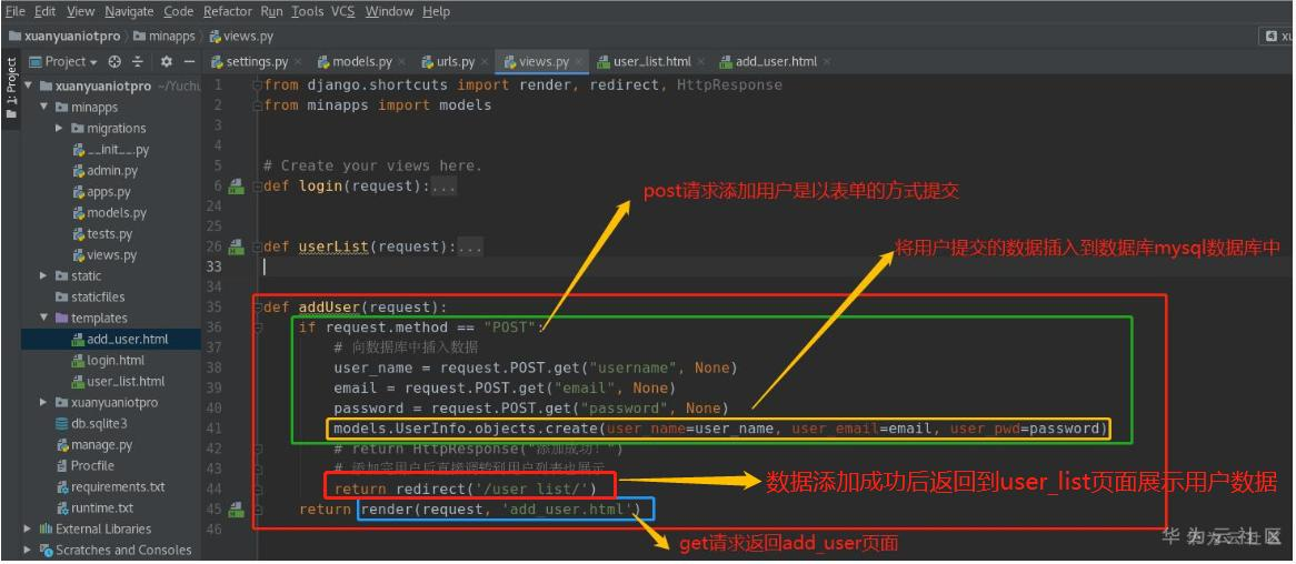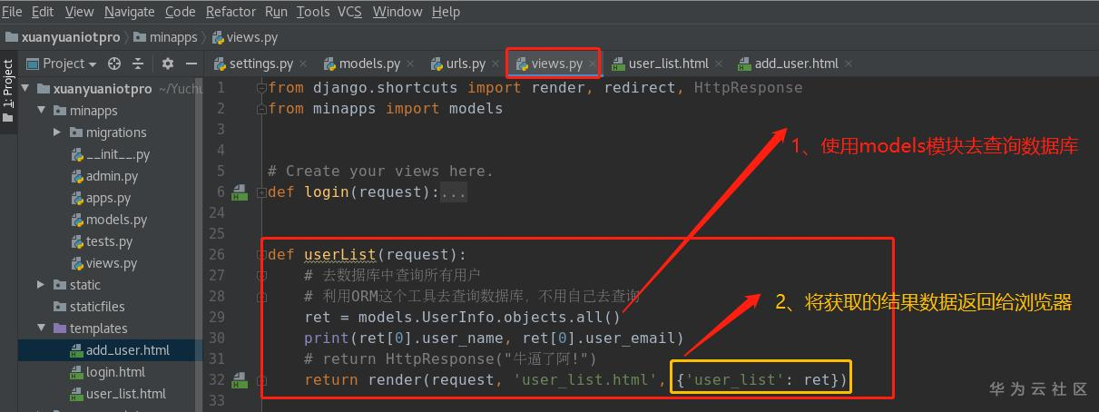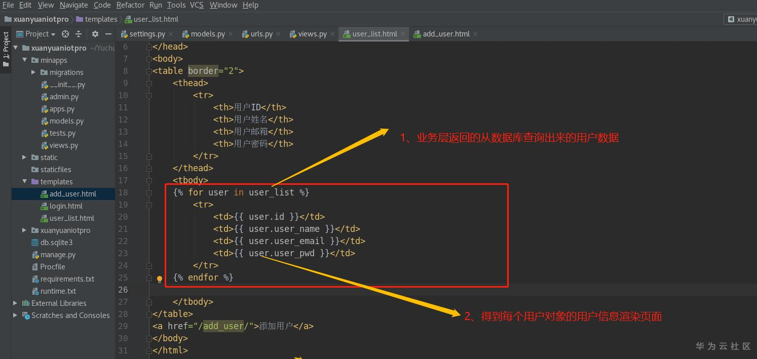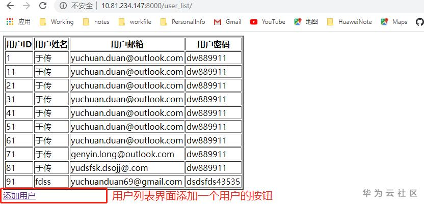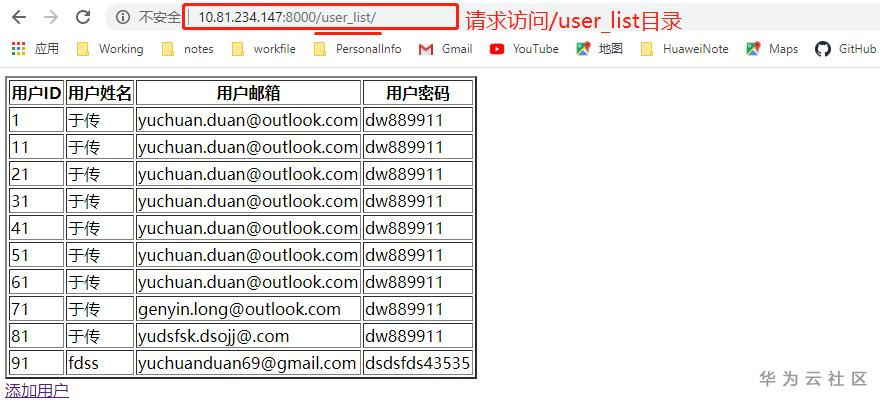 2、编写业务代码,发送请求后去数据库获取用户信息返回给浏览器以列表的方式展示给用户。