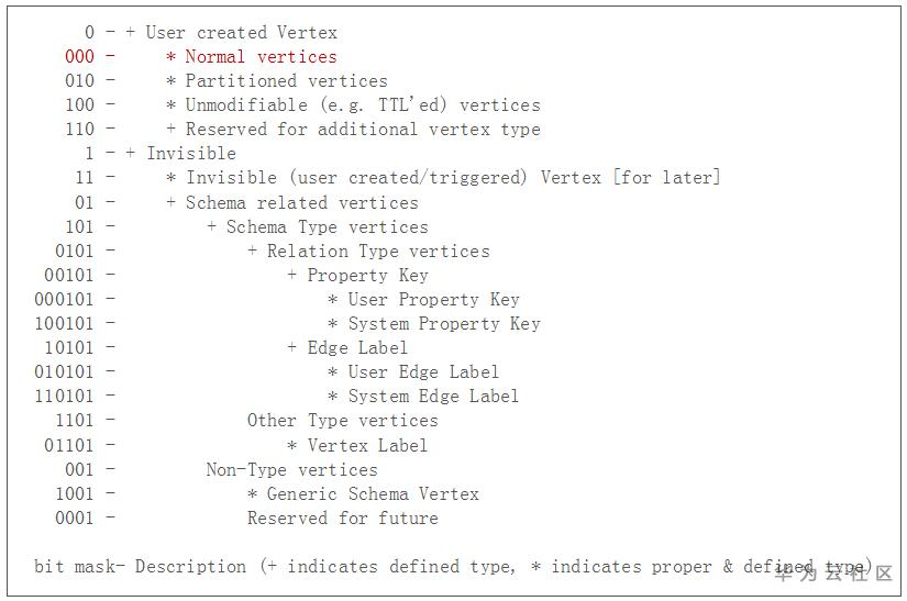 最后几个bit是ID padding, 表示Vertex的类型。具体的位数长度根据不同的Vertex类型而不同。最常用的普通Vertex,其值为’000’。