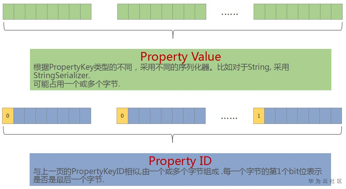 PropertyKeyID及方向整个结构的详细结构在后文中描述;属性的值占用一个或多个字段,具体格式在后文描述;属性的ID及Remaining属性采用相同的格式,具体格式在后文描述。