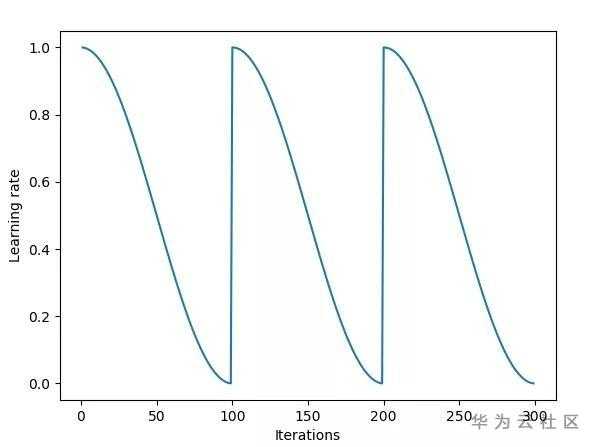 SGDR:性能良好的旧版热重启 SGD,在训练时,梯度下降算法可能陷入局部最小值,而不是全局最小值。梯度下降算法可以通过突然提高学习率,来 “跳出” 局部最小值并找到通向全局最小值的路径。这种方法将余弦退火与热重启相结合,使用余弦函数作为周期函数,并在每个周期最大值时重新开始学习速率。“热重启” 是因为学习率重新开始时并不是从头开始的,而是由模型在最后一步收敛的参数决定的。可以看一下这张示意图(来源于网上):