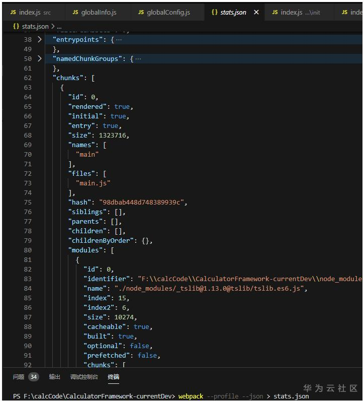 可以在根目录生成一个stats.json的文件,里面详细的列出了编译后的各JS文件信息