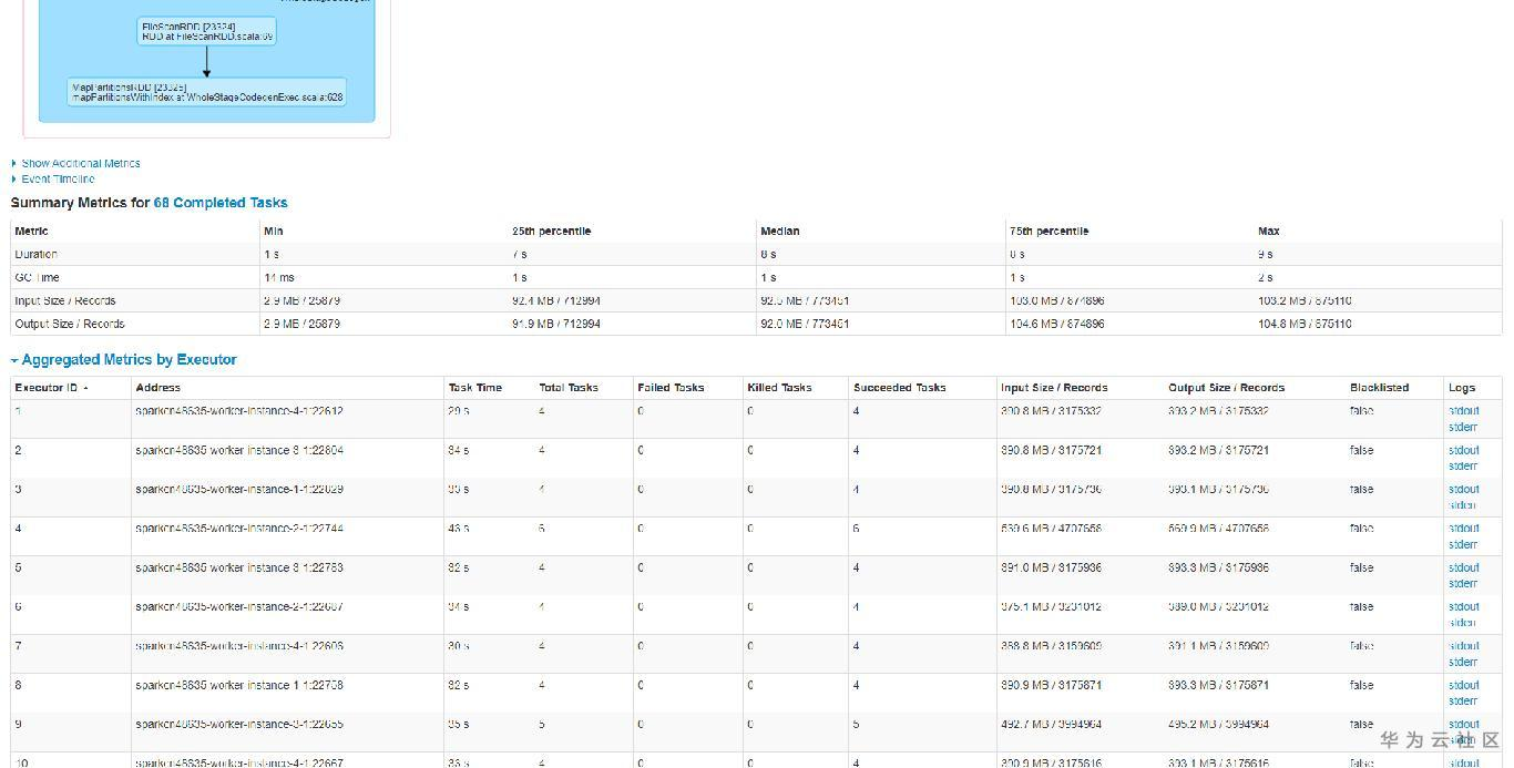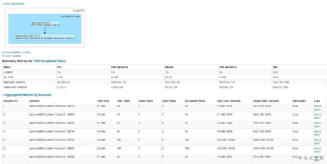 查询快的表,查询时总共有68个任务,任务分配比如均匀,平均7~9s左右,而查询慢的表,查询时总共1160个任务,平均也是9s左右。如下图所示: