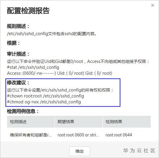 步骤 2 进入配置风险详情页面,单击“检测详情”,您可以根据“审计描述”验证检测结果,根据“修改建议”处理主机中的异常信息,从而加固配置基线。