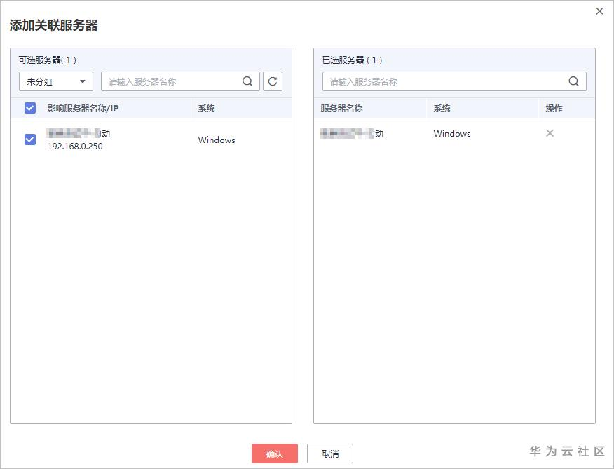 步骤 3 单击“添加服务器”,在弹出的“添加关联服务器”的窗口中,选择关联服务器。
