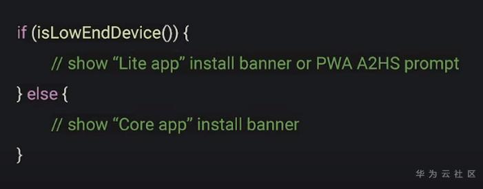 根据设备等级(低、中、高),来推荐轻便或者原生app。这里我们可以通过接口或者发送请求头信息来检测设备情况,再写一个方法根据设备情况来决定显示什么。如果用户设备等级判定为低,比如设备不好、网速慢,则将轻型应用程序推给用户;如果用户设备等级高,则推荐核心原生应用。