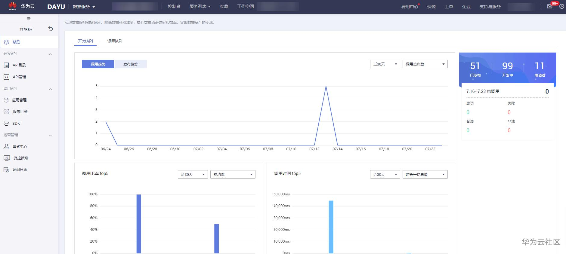 服务目录:服务目录是API服务的开放共享平台,展示了对当前用户可见的所有开放API,用户可以自行申请所需API服务。