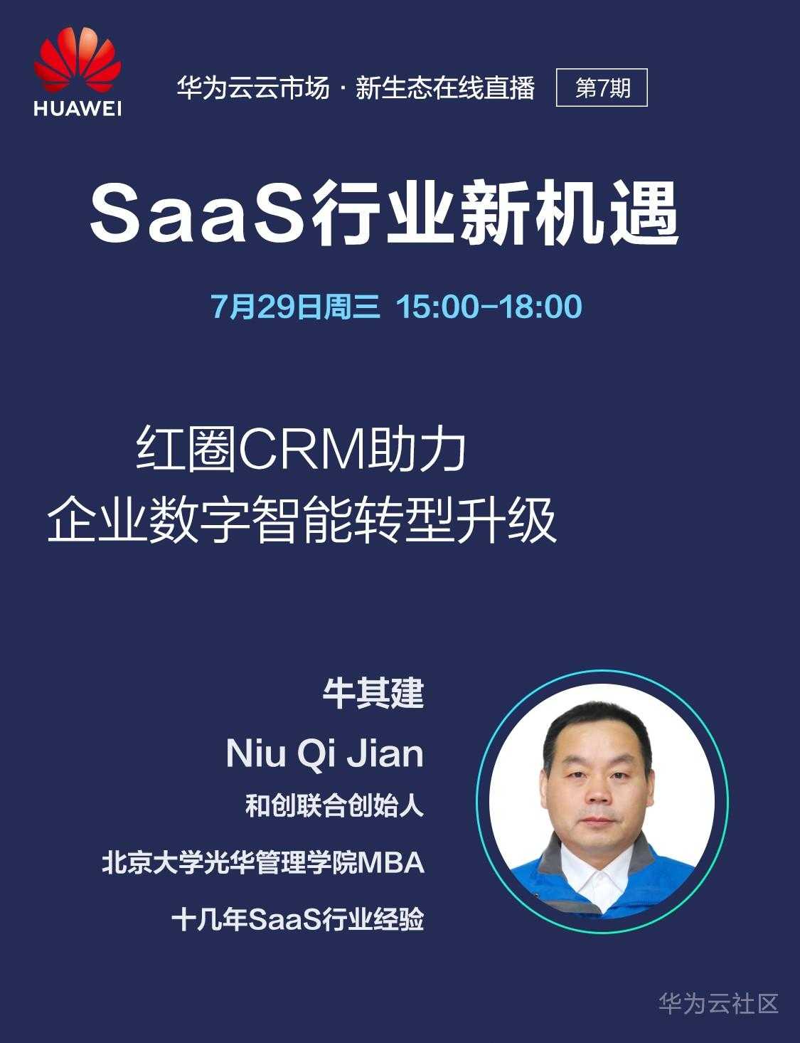 【直播资讯】直播预约!云市场新生态在线直播-SaaS行业新机遇之红圈CRM助力企业数字智能转型升级