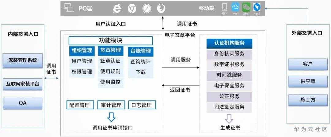 家装企业的平台化运营模式下,资源协同、管理协同对管理升级尤为重要。从实体印章向电子印章的转变可以帮助平台快速打通产业链中的业务信息渠道,实现业务全程电子化对接。