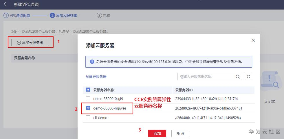 3、添加需要通过API网关访问的CCE工作负载的实例节点。可添加多个实例,API网关支持负载均衡功能。
