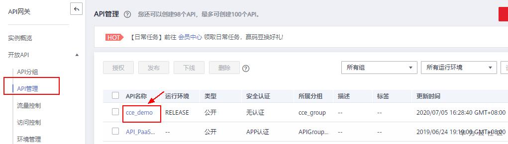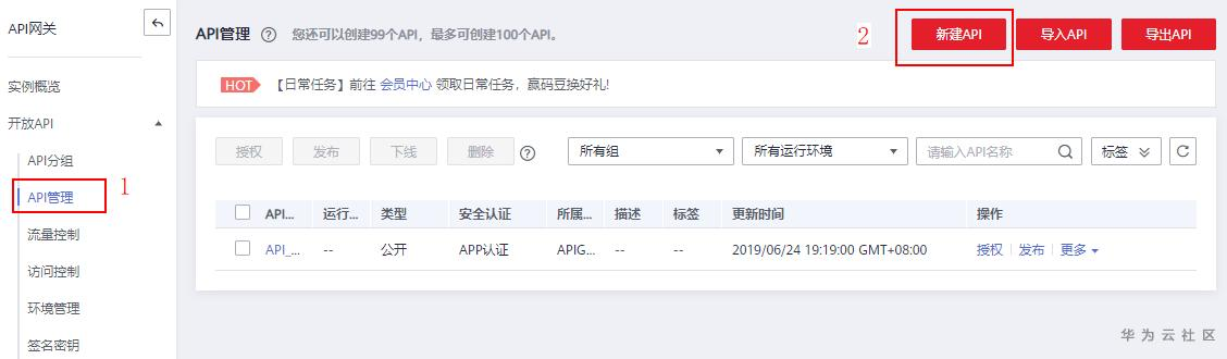 1、登录控制台,进入API网关服务。