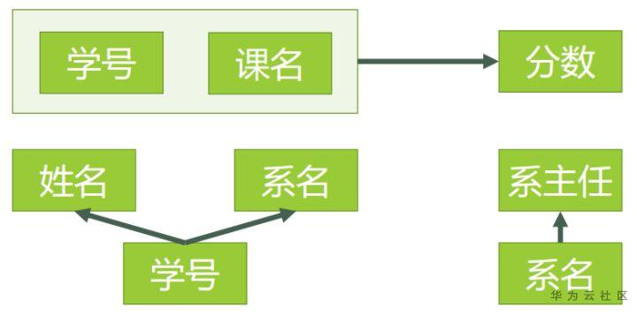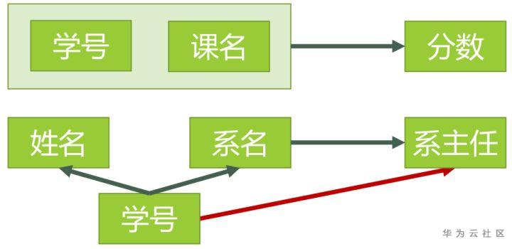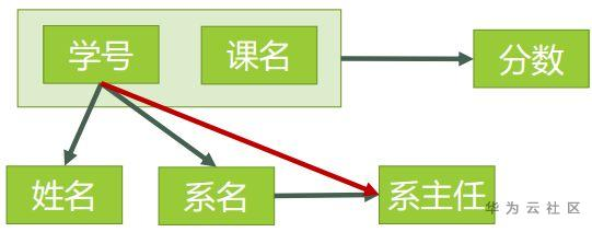 对于(学号,课名) → 系主任,有 学号 → 系主任,存在非主属性 对码(学号,课名)的部分函数依赖。