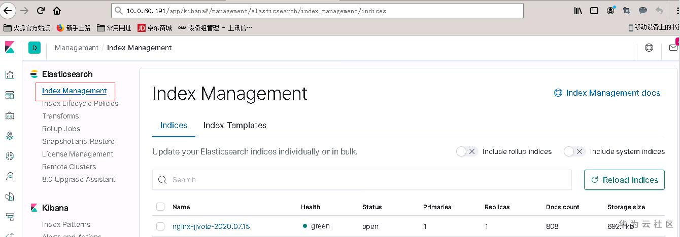 #这里我们自定义Index,elk中logstash-*是为elk自带索引可以试用一下