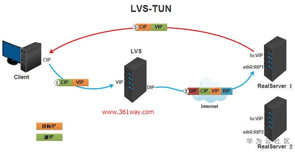 用户请求LVS到达director,director通过IP-TUN加密技术将请求报文的包封装到一个新的IP包里面,目的IP为VIP(不变),然后director将报文发送到realserver,realserver基于IP-TUN解密,然后解析出来包的目的为VIP,检测网卡是否绑定了VIP,绑定了就处理这个包,如果在同一个网段,将请求直接返回给用户,否则通过网关返回给用户;如果没有绑定VIP就直接丢掉这个包