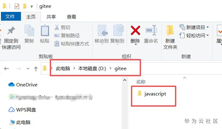 打开本地目录看一下,D:\gitee中javascript这个目录,就是我们刚通过vscode的拉取回来的gitee仓库(项目)