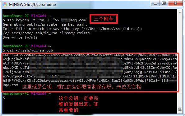 1. ssh-keygen -t rsa -C “558xxxxx@qq.com”