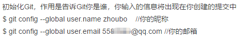 git config --global user.email 55xxxxxx@qq.com //你的邮箱